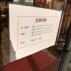 | 営業時間 | 11:00~14:30/18:00~21:00 [日] 11:00~14:30/18:00~20:30 [火] 11:00~14:30 |